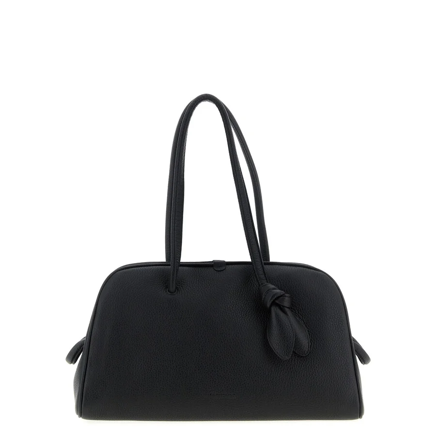 Jacquemus Ladies Shoulder Bag. SKU: 25EBAU00417AC03A03990. Color: Black. Jacquemus Le Turismo Shoulder Bag. Le Turismo' hammered leather shoulder bag in bowling style with front embossed logo, double fixed handle with tone-on-tone bow detail, top zip closure. Each leather is unique and has been carefully selected by a team of artisans. The model may have any imperfections or natural color variations. Composition: 100% calfskin leather (Bos Taurus). GENERAL Color: Black INFORMATION Brand: Jacquemus Gender: Womens Model: 25EBAU00417AC03A03990 ADDITIONAL INFO UPC Code: 3700943673220 Jomashop Sku: Z-39A2K Department: Bags Category: Shoulder Bag