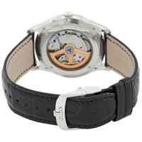 Silver-tone stainless steel case with a black leather strap. Fixed silver-tone stainless steel bezel. Blue dial with silver-tone hands and index hour markers. Minute markers around the outer rim. Dial Type: Analog. Date display above the 6 o'clock position. One subdial displaying: date/moonphase. Automatic movement. Scratch resistant sapphire crystal. Transparent see through case back. Round case shape, case size: 39 mm, case thickness: 9.3 mm. Water resistant at 50 meters / 165 feet. Functions: moon phase, date, hour, minute, second. Master Ultra Thin Series. Luxury watch style. Watch label: Swiss Made. Jaeger LeCoultre Master Ultra Thin Automatic Blue Dial Men's Watch Q1368480. CASE Case Size: 39 Case Thickness: 9.3 mm Case Material: Stainless Steel Case Shape: Round Case Back: Transparent See Through BAND Band Material: Leather Band Type: Strap Band Color: Black DIAL Dial Color: Blue Type: Analog Crystal: Scratch Resistant Sapphire Hands: Silver-tone Dial Markers: Index Second Markers: Minute Markers around the outer rim Sub Dials: One - Date/Moonphase Bezel: Fixed Bezel Color: Silver-tone Bezel Material: Stainless Steel INFORMATION Brand: Jaeger LeCoultre Series: Master Ultra Thin Collection Name: Master Ultra Thin Gender: Mens Model: Q1368480 Watch Label: Swiss Made Movement: Automatic FEATURES Water Resistance: 50 meters / 165 feet Calendar: Date display above the 6 o'clock position Functions: Moon Phase, Date, Hour, Minute, Second Watch Features: Moon Phase, Stainless Steel, Leather, Analog ADDITIONAL INFO Watch Style: Luxury Warranty: 2 Year Jomashop Warranty Jomashop Sku: JLC-Q1368480 Department: Watches Category: Watches