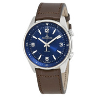 Silver-tone stainless steel case with a brown calfskin leather strap. Fixed silver-tone stainless steel bezel. Blue dial with silver-tone hands and index-Arabic numerals hour markers. Minute markers around the outer rim. Dial Type: Analog. Jaeger LeCoultre Calibre 898E/1 Automatic movement, containing 30 Jewels, composed of 195 parts, bitting at 28800 vph, and has a power reserve of approximately 38 hours. Scratch resistant sapphire crystal. Transparent case back. Round case shape, case size: 41 mm, case thickness: 11.2 mm. Water resistant at 100 meters / 330 feet. Functions: hour, minute, second. Polaris Series. Luxury watch style. Watch label: Swiss Made. Jaeger LeCoultre Polaris Blue Dial Automatic Men's Watch Q9008480. CASE Case Size: 41 Case Thickness: 11.2 mm Case Material: Stainless Steel Case Shape: Round Case Back: Transparent BAND Band Material: Calfskin Leather Band Type: Strap Band Color: Brown DIAL Dial Color: Blue Type: Analog Crystal: Scratch Resistant Sapphire Hands: Silver-tone Dial Markers: Index-Arabic Numerals Second Markers: Minute Markers around the outer rim Bezel: Fixed Bezel Color: Silver-tone Bezel Material: Stainless Steel INFORMATION Brand: Jaeger LeCoultre Series: Polaris Collection Name: Polaris Gender: Mens Model: Q9008480 Watch Label: Swiss Made Movement: Automatic Engine: Jaeger LeCoultre Calibre 898E/1 Power Reserve: 65 hours FEATURES Water Resistance: 100 meters / 330 feet Functions: Hour, Minute, Second Watch Features: Stainless Steel, Leather, Analog ADDITIONAL INFO Watch Style: Luxury Warranty: 2 Year Jomashop Warranty Jomashop Sku: JLC-Q9008480 Department: Watches Category: Watches