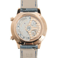 18kt rose gold case with a blue alligator band. Fixed 18kt rose gold bezel with diamond set. Blue dial with gold-tone hands and Arabic numeral hour markers. Dial Type: Analog. One subdial displaying: moonphase. Jaeger LeCoultre Calibre JLC 935A Automatic movement, based upon Jaeger LeCoultre Calibre JLC 935, containing 42 Jewels, composed of 267 parts, bitting at 28800 vph, and has a power reserve of approximately 40 hours. Scratch resistant sapphire crystal. Transparent see through case back. Round case shape, case size: 36 mm, case thickness: 10.5 mm. Deployment with push button release clasp. Water resistant at 30 meters / 100 feet. Functions: moon phase, hour, minute, second. Rendez-vous Moon Serenity Series. Luxury watch style. Watch label: Swiss Made. Jaeger LeCoultre Rendez-Vous Moon Serenity Automatic Diamond Blue Dial Ladies Watch Q3522480. CASE Case Size: 36 Case Thickness: 10.5 mm Case Material: 18kt Rose Gold Case Shape: Round Case Back: Transparent See Through BAND Band Material: Alligator Band Type: Strap Band Color: Blue Clasp: Deployment with Push Button Release DIAL Dial Color: Blue Type: Analog Crystal: Scratch Resistant Sapphire Hands: Gold-tone Dial Markers: Arabic Numeral Sub Dials: One - Moonphase Bezel: Fixed Bezel Color: 18kt Rose Gold Bezel Material: Diamond Set INFORMATION Brand: Jaeger LeCoultre Series: Rendez-Vous Moon Serenity Collection Name: Rendez-Vous Moon Serenity Gender: Womens Model: Q3522480 Watch Label: Swiss Made Movement: Automatic Engine: Jaeger LeCoultre Calibre JLC 935A Power Reserve: 40 hours FEATURES Water Resistance: 30 meters / 100 feet Functions: Moon Phase, Hour, Minute, Second Watch Features: Alligator Leather, Analog, Gold, Moon Phase, Diamond ADDITIONAL INFO Watch Style: Luxury Warranty: 2 Year Jomashop Warranty Jomashop Sku: JLC-Q3522480 Department: Watches Category: Watches