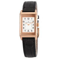 18kt rose gold case with a black (alligator) leather strap. Fixed 18kt rose gold bezel. Silver dial with Arabic numeral hour markers. Minute markers around an inner ring. Jaeger LeCoultre calibre 846/1 manual winding movement with a 38-hour power reserve. Scratch resistant sapphire crystal. Screw down crown. Solid case back. Rectangle case shape. Case dimensions: 35.8 mm x 21 mm. Tang clasp. Water resistant at 30 meters / 100 feet. Functions: hour, minute. Reverso Series. Sport watch style. Watch label: Swiss Made. Jaeger LeCoultre Reverso Classic Monoface Silver Dial Men's Watch Q2602540. CASE Case Size: 35 Case Material: 18kt Rose Gold Case Shape: Rectangle Case Back: Solid BAND Band Material: (Alligator) Leather Band Type: Strap Band Color: Black Clasp: Tang DIAL Dial Color: Silver Crystal: Scratch Resistant Sapphire Hands: Rose Gold-tone Dial Markers: Arabic Numeral Second Markers: Minute Markers around an inner ring Bezel: Fixed Bezel Material: 18kt Rose Gold Crown: Screw Down INFORMATION Brand: Jaeger LeCoultre Series: Reverso Collection Name: Reverso Gender: Mens Model: Q2602540 Watch Label: Swiss Made Movement: Hand Wind Engine: Jaeger LeCoultre Calibre 846/1 Power Reserve: 38 hours FEATURES Water Resistance: 30 meters / 100 feet Functions: Hour, Minute Watch Features: Leather, Gold, Alligator Leather ADDITIONAL INFO Watch Style: Sport Warranty: 2 Year Jomashop Warranty Jomashop Sku: JLC-Q2602540 Department: Watches Category: Watches
