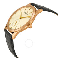 Pre-owned 18kt rose gold case with a black leather strap. Fixed 18kt rose gold bezel. Rose dial with rose gold dauphine-style shape hands and index hour markers. Minute markers around the outer rim. Dial Type: Analog. One subdial displaying: small second at the 6 o'clock position. Jaeger LeCoultre Calibre JLC 896 Automatic movement, containing 34 Jewels, composed of 242 parts, bitting at 28800 vph, and has a power reserve of approximately 43 hours. Scratch resistant sapphire crystal. Pull / push crown. Skeleton case back. Round case shape, case size: 40 mm, case thickness: 8.62 mm. Deployment clasp. Water resistant at 50 meters / 165 feet. Functions: hour, minute, second. Master Grande Ultra Thin Series. Luxury watch style. Watch label: Swiss Made. Jaeger LeCoultre Master Grande Ultra Thin Automatic Rose Dial Black Leather Men's Watch Q1352420-BK. GENERAL Collection Name: Master Grande Ultra Thin INFORMATION Brand: Jaeger LeCoultre Series: Master Grande Ultra Thin Model: Q1352420-BK Gender: Mens Watch Label: Swiss Made Movement: Automatic Engine: Jaeger LeCoultre Calibre JLC 896 Power Reserve: 43 hours CONDITION INFORMATION Box: No Preowned Item Condition: Excellent Papers: No CASE Case Size: 40 mm Case Thickness: 8.62 mm Case Material: 18kt Rose Gold Case Shape: Round Case Back: Skeleton DIAL Type: Analog Dial Color: Rose Crystal: Scratch Resistant Sapphire Hands: Rose Gold Dauphine-style shape Second Markers: Minute Markers around the outer rim Dial Markers: Index Sub Dials: One - Small Second at the 6 o'clock position Bezel: Fixed Bezel Material: 18kt Rose Gold Crown: Pull / Push BAND Band Type: Strap Band Material: Leather Band Color: Black Clasp: Deployment FEATURES Water Resistance: 50 meters / 165 feet Functions: Hour, Minute, Second Watch Features: Leather, Gold, Analog ADDITIONAL INFO Watch Style: Luxury Warranty: 1 Year Jomashop Warranty UPC Code: 845960066112 Jomashop Sku: PRE-P-JLC66666 Department: Watches Category: Watches