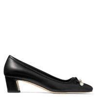 Jimmy Choo Ladies Heels. SKU: J000168630-BLACK. Color: Black. Vamp Style: Slip-on. Jimmy Choo Elme 45 Embellished Pumps. These pumps feature exquisite pearl and bow detailing, a branded insole for added luxury, and a chic square toe, all set atop a low block heel that combines comfort with refined style. Outer: 100% Leather. Made in Italy. Please visit the brand website for sizing information. GENERAL Brand Type: Designer INFORMATION Brand: Jimmy Choo Model: J000168630-BLACK Gender: Womens DETAILS Category: Heels Color: Black Shoe Vamp Style: Slip-on Upper Material: Leather Lining Material: Leather Sole Material: Leather ADDITIONAL INFO Jomashop Sku: -J000168630BLACK Department: Shoes