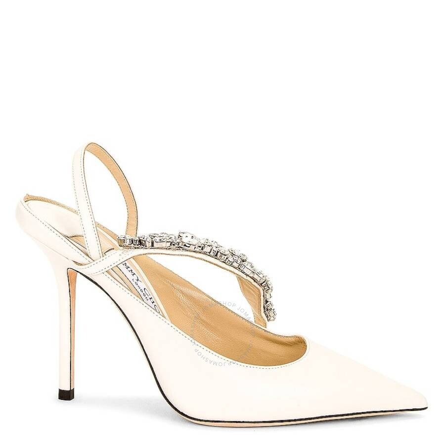 Jimmy Choo Ladies Sandals. SKU: J000163659-LATTE/CLEAR. Color: White. Jimmy Choo Flos 100 Leather Pumps. Crafted from calf leather, these Flos pumps showcase crystal embellishments, a pointed toe, and an elasticated slingback strap. They feature a branded leather insole, a leather outsole, and are completed with a sleek 100mm stiletto heel. Outer: Calf Leather 100%. Made in Italy. Please visit the brand website for sizing information. INFORMATION Brand: Jimmy Choo Model: J000163659-LATTE/CLEAR Gender: Womens DETAILS Category: Sandals Shoe Style: Point Toe Shoe Style: Point Toe Color: White Shoe Vamp Style: Slip-on Upper Material: Leather Sole Material: Leather Heel Size: 10 cm ADDITIONAL INFO Jomashop Sku: -000163659LATTECLEAR Department: Shoes