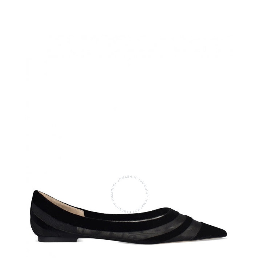 Jimmy Choo Ladies Flats. SKU: J000163335. Color: Black. Jimmy Choo Love Ballet Flats. Made of suede with a mesh overlay, this pair of flats features a pointed toe and slip-on style for easy wear. They have a branded insole for comfort and a flat leather sole, offering a sleek and stylish look. Please visit the brand website for sizing information. INFORMATION Brand: Jimmy Choo Model: J000163335 Gender: Womens DETAILS Category: Flats Shoe Style: Ballet Shoe Style: Ballet Color: Black Shoe Vamp Style: Slip-on Upper Material: Suede Sole Material: Leather ADDITIONAL INFO Jomashop Sku: -J000163335 Department: Shoes