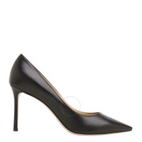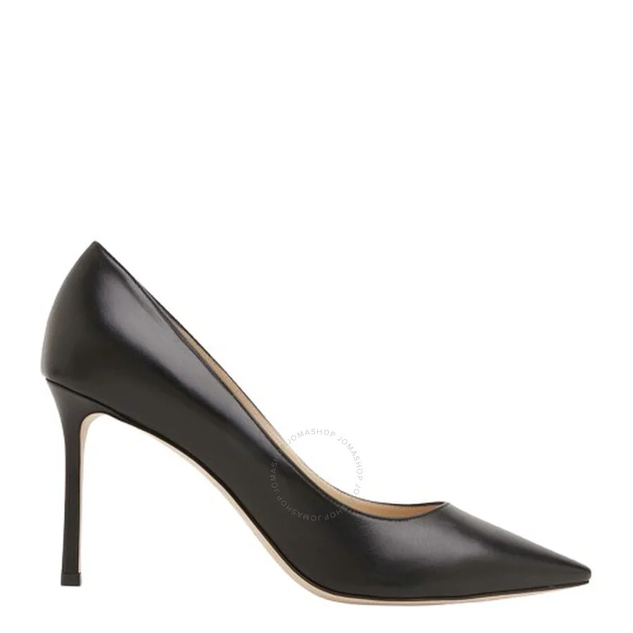 Jimmy Choo Ladies Heels. SKU: J000065651. Color: Black. Jimmy Choo Romy 85 mm Leather Pumps. These Romy leather pumps feature pointed toes and a slip-on style, offering both elegance and comfort. They showcase a classic silhouette and are set on a mid-heel measuring 85mm, with a branded insole for added luxury. Please visit the brand website for sizing information. INFORMATION Brand: Jimmy Choo Model: J000065651 Gender: Womens DETAILS Category: Heels Shoe Style: Pumps Shoe Style: Pumps Color: Black Shoe Vamp Style: Slip-on Upper Material: Leather Sole Material: Leather ADDITIONAL INFO Jomashop Sku: -J000065651 Department: Shoes