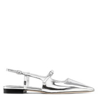 Jimmy Choo Ladies Sneakers. SKU: J000174041. Color: Silver. Jimmy Choo Silver Didi Leather Ballet Flats. The Didi flat in metallic leather offers a modern take on a pointed-toe silhouette. This sleek slingback features an adjustable, elasticated strap for a comfortable and secure fit. Finished with a liquid metal leather upper, leather lining, and leather sole, it delivers effortless style with a refined touch. 100% Leather. Made in Italy. Please visit the brand website for sizing information. GENERAL Brand Type: Designer INFORMATION Brand: Jimmy Choo Model: J000174041-SILVER Gender: Womens DETAILS Category: Sneakers Color: Silver Shoe Vamp Style: Slip-on Upper Material: Leather Sole Material: Leather ADDITIONAL INFO Jomashop Sku: -J000174041SILVER Department: Shoes