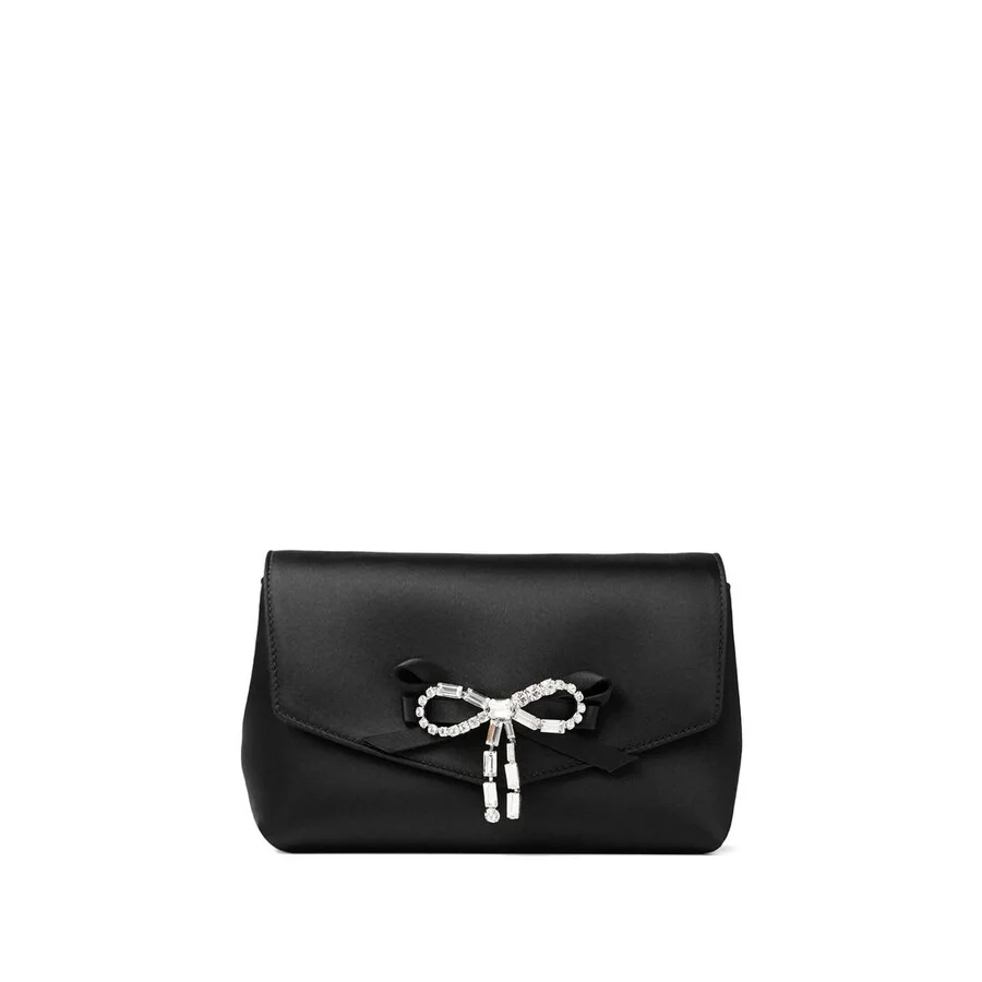 Soft Bow Mini Bag Black Satin Mini Bag with Crystal Bow