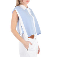 Brand: JW Anderson. Fashion category: Vests. SKU: KW1064-YN0317-BLUE. Material: Cotton blend. Color: Blue. JW Anderson Contrast Striped Polo Vest. This sleeveless cotton blend vest features a knitted construction, embroidered logo at the rear, signature JW-initials anchor logo, and a two-tone design with stripe detailing, a contrasting polo collar, and a short front button fastening, finished with a high-low hem and a cropped fit. 77% Cotton, 16% Polyester, 5% Cashmere, 2% Elastane. GENERAL Color: Blue INFORMATION Brand: Jw Anderson Gender: Womens Model: KW1064-YN0317-BLUE DETAILS Category: Tops Apparel Type: Vests Material: Cotton Blend ADDITIONAL INFO Jomashop Sku: -KW1064YN0317BLUE Department: Clothing