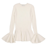 JW Anderson Ladies Tops. Fashion category: Shirts & Blouses. SKU: KW0957-YN0008. Color: Off White. JW Anderson Contrast Woven Hem Knit Top. The merino fitted knitted top features a crew neckline and a lightweight ribbed knit. It is enhanced with fluted woven cotton sleeves and hem detail. 100% Merino Wool. Contrast: 100% Cotton. GENERAL Color: Off White INFORMATION Brand: Jw Anderson Gender: Womens Model: KW0957-YN0008 DETAILS Category: Tops Apparel Type: Shirts & Blouses ADDITIONAL INFO Jomashop Sku: -W0957YN0008OFFWHITE Department: Apparel