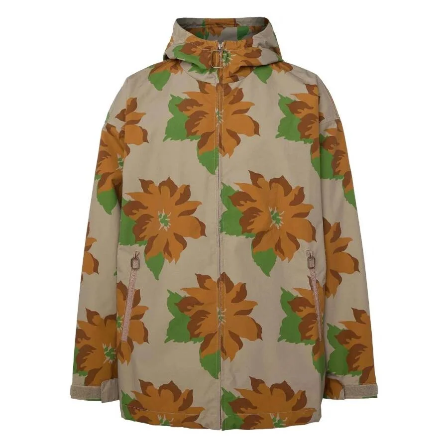 JW Anderson Men's Outerwear. Fashion category: Coats & Jackets. SKU: JK0333-PG1618. Color: Brown. JW Anderson Floral Print Hooded Jacket. This jacket features an oversized floral print in warm earthy tones. Set against a muted beige background, the striking rust-orange flowers with green leaves bring a retro-inspired edge to a modern silhouette. Crafted from lightweight, durable fabric, this zip-up jacket includes functional details like a drawstring hood, front zip closure, side pockets, and adjustable cuffs. 100% Nylon. GENERAL Size Info: Medium Clothing Size: Men's Apparel Size: M Color: Brown INFORMATION Brand: JW Anderson Gender: Mens Model: JK0333-PG1618-BROWN DETAILS Category: Outerwear Apparel Type: Coats & Jackets Material: Nylon ADDITIONAL INFO UPC Code: 5057543547153 Jomashop Sku: Z-Z64E4 Department: Clothing