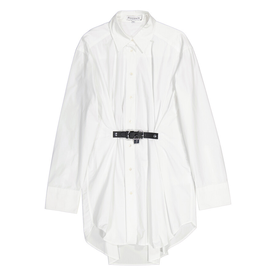 JW Anderson Ladies Dresses. SKU: DR0369-PG1090. Color: White. JW Anderson Long Sleeve Shirt Dress. This shirt offers an oversized fit with a cuff cut and lowered shoulder line for enhanced movement. It features long sleeves with buttoned cuffs, a collar, and a button fastening. The garment is crafted from fine, non-stretch fabric. 100% Cotton GENERAL Color: White INFORMATION Brand: Jw Anderson Gender: Womens Model: DR0369-PG1090 DETAILS Category: Dresses ADDITIONAL INFO Jomashop Sku: -DR0369PG1090WHITE Department: Apparel
