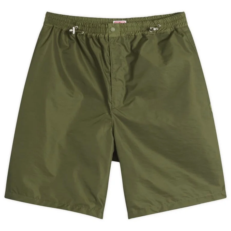 Kenzo Men's Bottoms. Fashion category: Shorts. SKU: FF55SH5069CE-50. Color: Khaki. Kenzo Adjustable Waist Drawstring Shorts. These shorts feature side and rear pockets, a drawstring waist with adjustable bungee cords, and are finished with a rubberised flower logo for a distinctive touch. 52% Polyamide, 48% Polyester. Made in Tunisia. GENERAL Brand Type: Designer Color: Khaki INFORMATION Brand: Kenzo Gender: Mens Model: FF55SH5069CE-50 DETAILS Category: Bottoms Apparel Type: Shorts Material: Polyamide, Polyester ADDITIONAL INFO Jomashop Sku: -FF55SH5069CE50 Department: Clothing