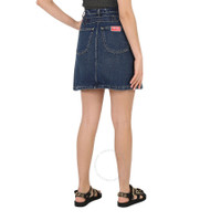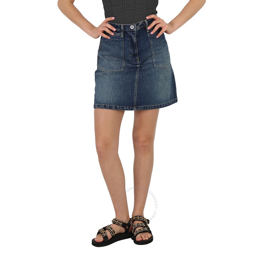 Kenzo Ladies Bottoms. Fashion category: Skirts. SKU: FD52DJ2696B2.DD. Color: Dark Stone Blue Denim. Kenzo Dark Stone Blue Denim Flared Mini Skirt. This mini skirt by Kenzo features a zip and button front fly fastening, 2 front patch pockets, 2 back patch pockets, contrasting piping, belt loops, strap with adjustable metal buckle at the back, Kenzo Paris jacron on the back pocket. 100% cotton. GENERAL Color: Dark Stone Blue Denim INFORMATION Brand: Kenzo Gender: Womens Model: FD52DJ2696B2.DD DETAILS Category: Bottoms Apparel Type: Skirts Material: Cotton ADDITIONAL INFO Jomashop Sku: -FD52DJ2696B2DD Department: Apparel