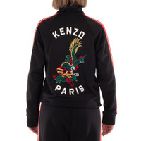 Kenzo Ladies Tops. Fashion category: Cardigans & Sweaters. SKU: FE55SW1644MZ-99J. Color: Black. Kenzo Dragon Print Long Sleeve Sweater. This long-sleeved retro jacket features a standing collar, two side pockets, and a two-way zip fastening. The emblematic Tiger adorns the chest, while the back is decorated with a large dragon representing the Year of the Dragon, contrasting red and white stripes on the sleeves and the interlock fabric complete the design. 55% polyester, 45% cotton. Made in Portugal. GENERAL Color: Black INFORMATION Brand: Kenzo Gender: Womens Model: FE55SW1644MZ-99J DETAILS Category: Tops Apparel Type: Cardigans & Sweaters Material: Cotton, Polyester ADDITIONAL INFO Jomashop Sku: -FE55SW1644MZ99J Department: Clothing