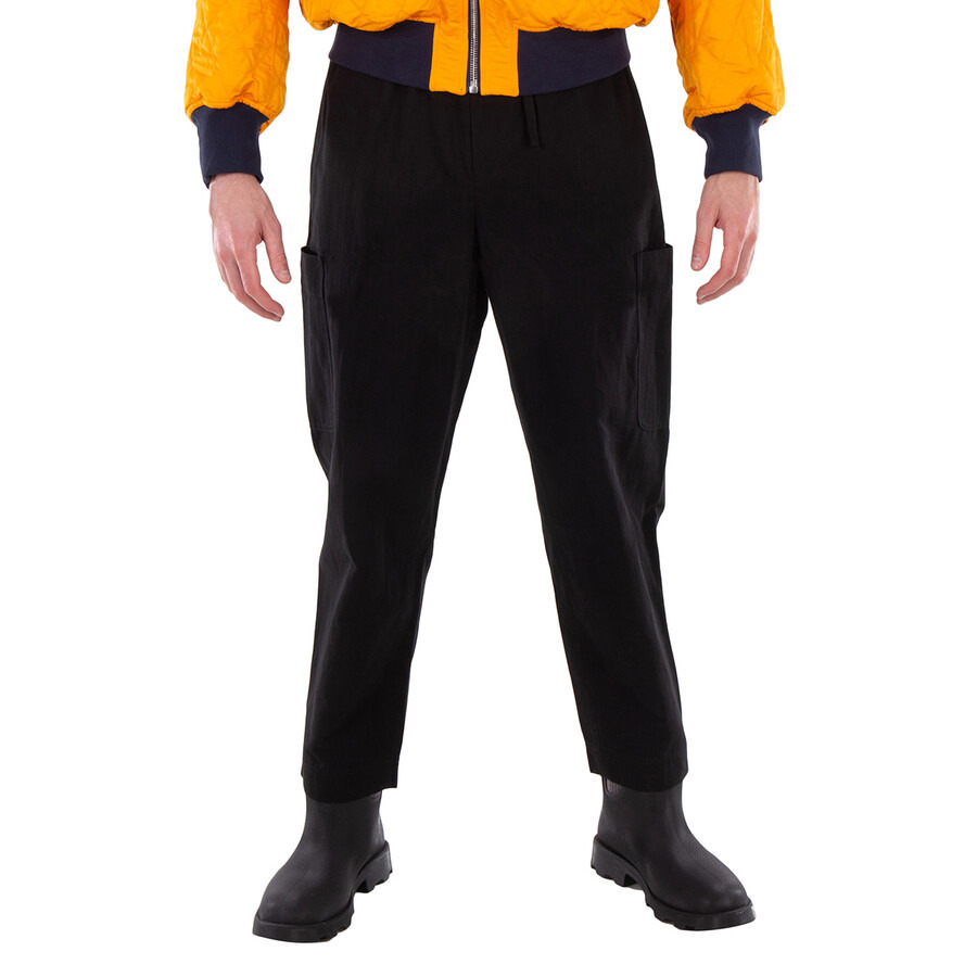 Kenzo Men's Bottoms. Fashion category: Pants & Leggings. SKU: FE55PA5019GN-99. Color: Black. Kenzo Drawstring Logo-Patch Pants. This pants feature a cotton-linen blend with a slub texture, a logo patch on the rear, an elasticated drawstring waistband, two side inset pockets, two side patch pockets, a rear patch pocket, a tapered leg, and a drawstring fastening. 63% Cotton, 37% Linen. Made in Romania. GENERAL Brand Type: Designer Color: Black INFORMATION Brand: Kenzo Gender: Mens Model: FE55PA5019GN-99 DETAILS Category: Bottoms Apparel Type: Pants & Leggings Material: Cotton, Linen ADDITIONAL INFO Jomashop Sku: -FE55PA5019GN99 Department: Clothing