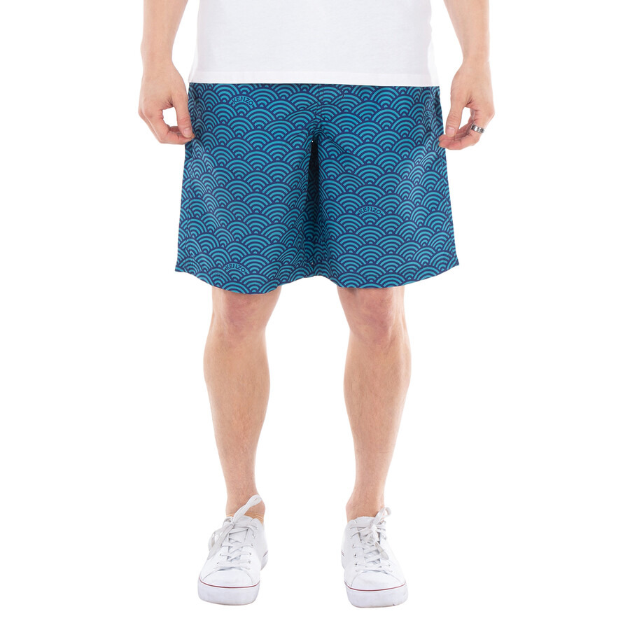 Kenzo Men's Swim. Fashion category: Swimsuits. SKU: FE55BA3019B1-73. Color: Blue. Kenzo Drawstring Waistband Swim Shorts. This swim shorts feature a Seigaiha all-over print, an elasticated drawstring waistband, two side slit pockets, a rear flap pocket, eyelet detailing, are unlined, and have a front touch-strap fastening. Polyester 100%. GENERAL Color: Blue INFORMATION Brand: Kenzo Gender: Mens Model: FE55BA3019B1-73 DETAILS Category: Swim Apparel Type: Swimsuits Material: Polyester ADDITIONAL INFO Jomashop Sku: -FE55BA3019B173 Department: Clothing