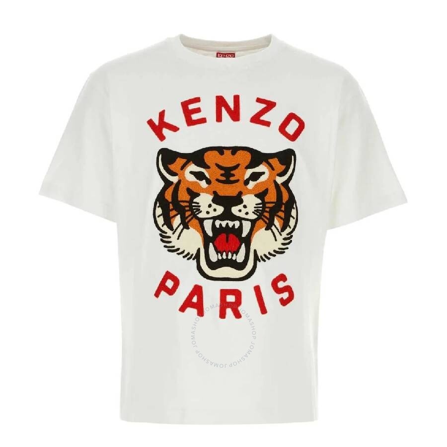 Kenzo Men's Tops. Fashion category: T-Shirts & Henleys. SKU: FE68TS0084SI.2. Color: Off White. Kenzo Embroidered Tiger Cotton T-Shirt. This t-shirt features cotton lightweight jersey, a crew neck, a signature Lucky Tiger embroidered motif, short sleeves, a straight hem, and is unlined. 100% cotton. Made in Portugal. GENERAL Brand Type: Designer Color: Off White INFORMATION Brand: Kenzo Gender: Mens Model: FE68TS0084SI.2 DETAILS Category: Tops Apparel Type: T-Shirts & Henleys Material: Cotton ADDITIONAL INFO Jomashop Sku: -FE68TS0084SI2 Department: Clothing