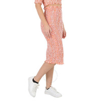 Kenzo Ladies Medium Orange Check Ruched Midi Skirt