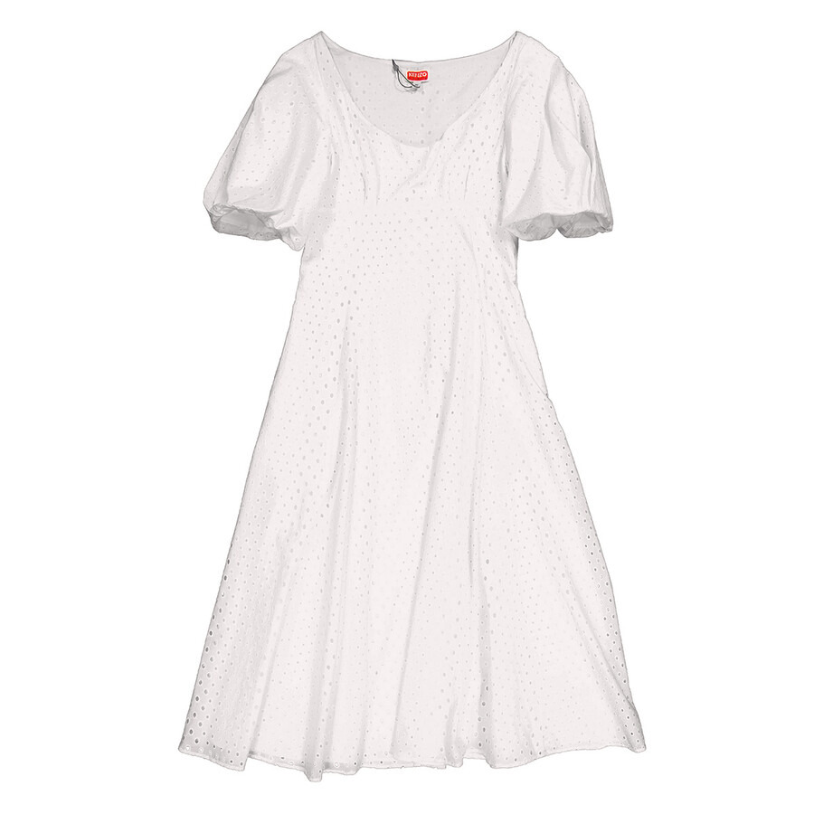 Kenzo Ladies Off White Broderie Anglais Embroidered Midi Dress