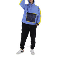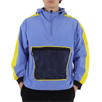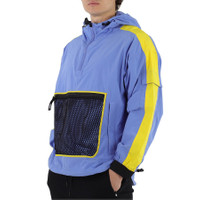 This jacket from Kenzo features a hood with contrasting pull cords and stoppers, long sleeves with elasticated cuffs, 2 flap pockets on sleeves and 2 raglan pockets with zips, pull cord with stopper at hem, central pocket made from fishnet-effect mesh, contrasting panels on sleeves and a raised collar with zip. Materials: 90% Polyester, 10% Nylon. GENERAL Upper Material: Polyester Color: Blue INFORMATION Brand: Kenzo Gender: Mens Model: FA55BL6591NH-66 DETAILS Category: Outerwear Apparel Type: Coats & Jackets ADDITIONAL INFO Jomashop Sku: -FA55BL6591NH66 Department: Apparel
