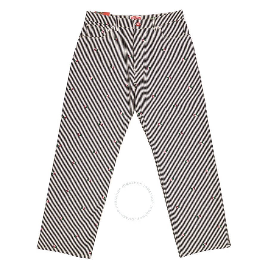 Kenzo Rinse Blue Denim Striped Floral Suisen Relaxed Fit Jeans