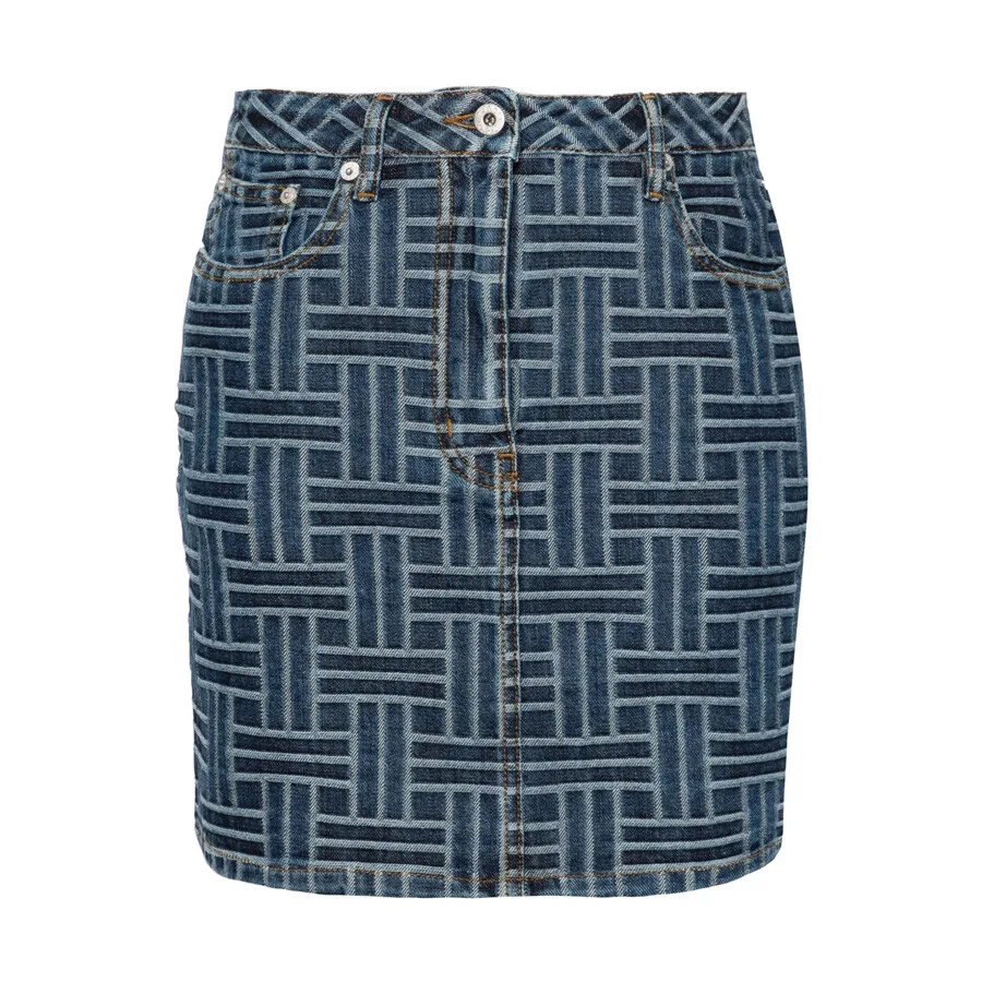 Kenzo Ladies Bottoms. Fashion category: Skirts. SKU: FE62DJ2806J3.DS. Color: Medium Stone Blue Denim. Kenzo Womens Weave Miniskirt In Japanese Denim. The 'KENZO Weave' mini skirt is crafted from Japanese denim with a stone-washed finish, featuring contrasting topstitching throughout. It’s detailed with a KENZO Paris leather jacron at the back and engraved buttons for a refined, signature touch. 100% cotton. Made in Tunisia. GENERAL Size Info: 27 Brand Type: Designer Clothing Size: Ladies Apparel Size: 27 Color: Medium Stone Blue Denim INFORMATION Brand: Kenzo Gender: Womens Model: FE62DJ2806J3.DS DETAILS Category: Bottoms Apparel Type: Skirts Material: Cotton ADDITIONAL INFO UPC Code: 3612230711204 Jomashop Sku: Z-99WEG Department: Clothing