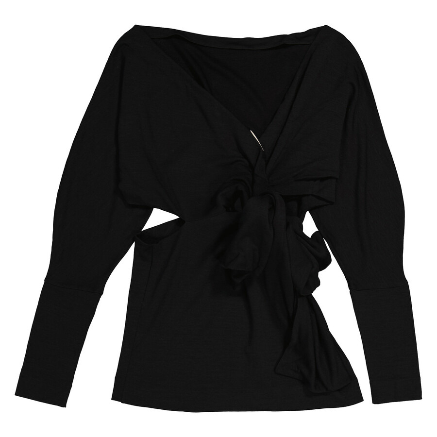 Khaite Ladies Black Lanie Knotted Cutout Tunic Top