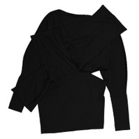 Khaite Ladies Tops. Fashion category: Shirts & Blouses. SKU: 2195483. Color: Black. Khaite Ladies Black Lanie Knotted Cutout Tunic Top. This dolman sleeve wool-blend top features a side cut-out, pullover style and an open V'd back with knot details at the front and back. 53% Virgin wool , 41% viscose, 16% polyamide. GENERAL Color: Black INFORMATION Brand: Khaite Gender: Womens Model: 2195483 DETAILS Category: Tops Apparel Type: Shirts & Blouses ADDITIONAL INFO Jomashop Sku: -2195483N Department: Apparel
