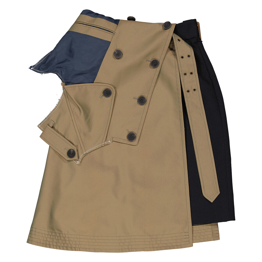 Kolor Ladies Bottoms. Fashion category: Skirts. SKU: 23WCL-S04107-C. Color: Navy. Kolor Ladies Trench Detail Patchwork Skirt. This Kolor skirt showcases a bold and creative design, featuring a unique layered look with overlapping panels in earthy tones of olive green and navy. The skirt includes large utility-style pockets with button detailing, adding a deconstructed and avant-garde touch. The asymmetrical cut and contrast in fabrics give the piece a playful yet sophisticated edge, perfect for someone looking to make a fashion-forward statement. 100% Polyester (Woven). GENERAL Color: Navy INFORMATION Brand: Kolor Gender: Womens Model: 23WCL-S04107-C DETAILS Category: Bottoms Apparel Type: Skirts ADDITIONAL INFO Jomashop Sku: -23WCLS04107C Department: Clothing