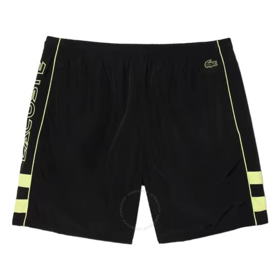 Lacoste Men's Bottoms. Fashion category: Shorts. SKU: GH1879-MO-6VT. Color: Black/Limeira. Lacoste Comfort-Fit Logo Embroidered Shorts. Crafted from durable recycled nylon canvas, feature practical details such as an elasticated waistband and two hip pockets, enhanced by 3D seams for added texture, contrast accents for a touch of croco-style, Lacoste embroidery on the left leg, and a silicone crocodile, blending sports-inspired design with lifestyle appeal. 100% Polyester. GENERAL Color: Black/Limeira INFORMATION Brand: Lacoste Gender: Mens Model: GH1879-MO-6VT DETAILS Category: Bottoms Apparel Type: Shorts Material: Polyester ADDITIONAL INFO Jomashop Sku: -GH1879MO6VT Department: Apparel