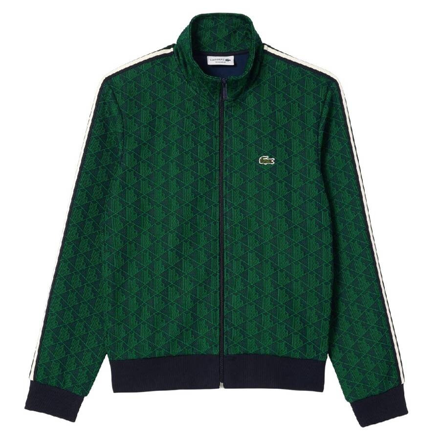 Lacoste Men's Tops. Fashion category: Hoodies & Sweatshirts. SKU: SH1368-LO-IQ0.Color: Multicolor. This jacket is made from organic cotton jacquard monogram knit and recycled polyester, featuring a regular, slightly fitted cut, two welt pockets on the sides, bold contrast stripes on the sleeves, and an embroidered crocodile on the chest. Polyester (58%), Cotton (38%), Polyamide (4%) GENERAL Color: Multicolor INFORMATION Brand: Lacoste Gender: Mens Model: SH1368-LO-IQ0 DETAILS Category: Tops Apparel Type: Hoodies & Sweatshirts Material: Cotton, Polyamide, Polyester ADDITIONAL INFO Jomashop Sku: -SH1368LOIQ0 Department: Clothing
