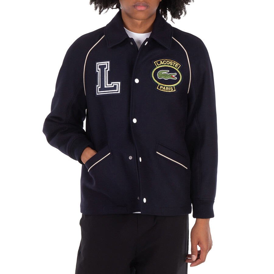 Lacoste Men's Outerwear. Fashion category: Coats & Jackets. SKU: BH2345-LO-HDE. Color: Black. Lacoste Paris Wool-Blend Blouson Jacket. Made from Italian wool blend with padding for unmatched comfort, this jacket combines casual, youthful vibes, featuring "L" and "Cornelly" badges, contrast front buttons, an inside pocket, and Lacoste Paris embroidery on the bust. GENERAL Color: Black INFORMATION Brand: Lacoste Gender: Mens Model: BH2345-LO-HDE DETAILS Category: Outerwear Apparel Type: Coats & Jackets ADDITIONAL INFO Jomashop Sku: -BH2345LOHDE Department: Clothing