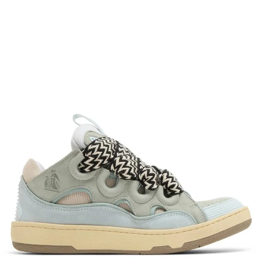 Lanvin Ladies Sneakers. SKU: FW-SKDK02-DRA2-A21-PALE BLUE. Color: Pale Blue. Lanvin Pale Blue Curb Sneakers. The Curb sneaker channels bold ’90s energy with its assertive silhouette and exaggerated proportions. Crafted from nappa calfskin, suede, and mesh, this intricate design offers ultimate comfort through its rounded shape, padded quilted tongue, and metallic eyelets. Finished with waxed and woven double laces in a herringbone motif. 57% Polyester, 13% Elastane, 30% Calf Leather. Made in Italy. Please visit the brand website for sizing information. GENERAL Brand Type: Designer INFORMATION Brand: Lanvin Model: FW-SKDK02-DRA2-A21-PALE BLUE Gender: Womens DETAILS Category: Sneakers Color: Pale Blue ADDITIONAL INFO Jomashop Sku: -DK02DRA2A21PALEBLUE Department: Shoes