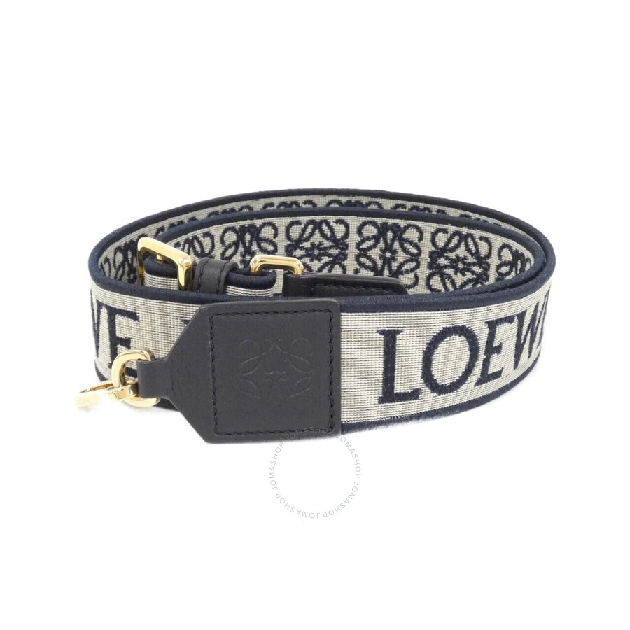 Loewe Ladies Bag Accessories. SKU: C073T87X01.5938. Barcode: 8432902989886. Color: Navy/Black. Loewe Anagram Strap In Jacquard And Calfskin. Crafted from a combination of calfskin and jacquard, this piece features a LOEWE pattern on one side and an Anagram pattern on the reverse. It is designed with hook fastenings, a detachable and adjustable strap, and is finished with an embossed Anagram. 4cm wide, 65cm-100cm long. Main material: Jacquard/Calf Leather. Made in Spain. GENERAL Brand Type: Designer Color: Navy/Black INFORMATION Brand: Loewe Gender: Womens Model: C073T87X01.5938 ADDITIONAL INFO UPC Code: 8432902989886 Jomashop Sku: Z-4E2Z9 Department: Bags Category: Bag Accessories