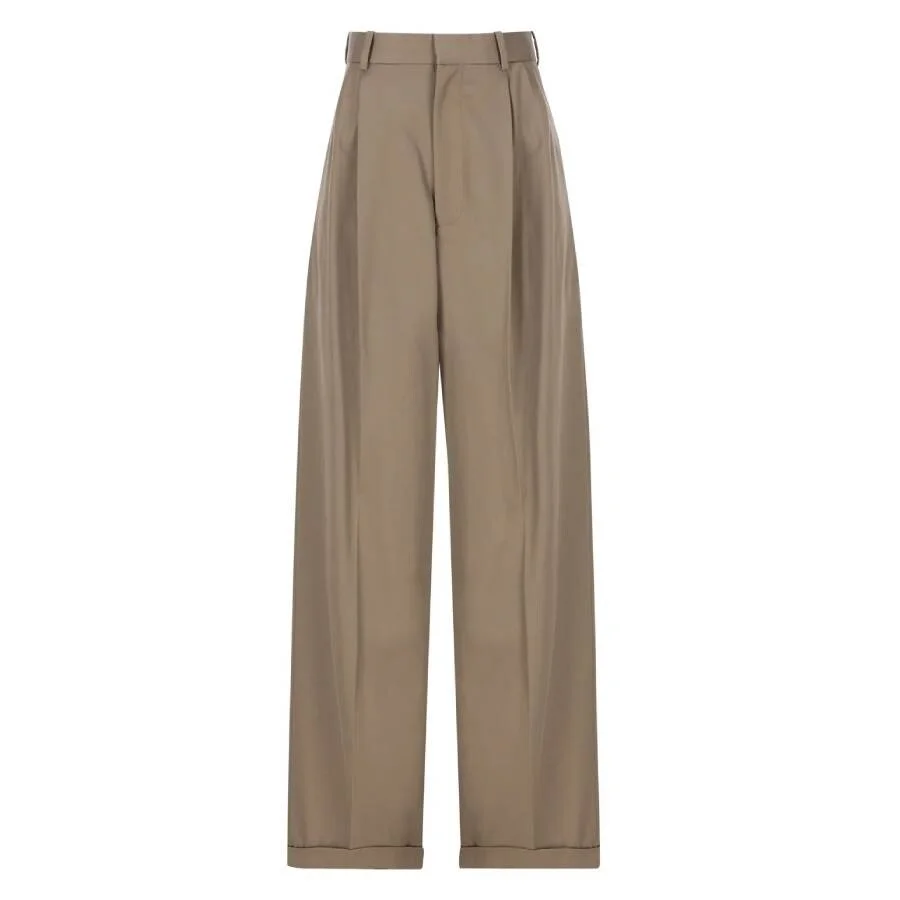 Loewe Ladies Bottoms. Fashion category: Pants & Leggings. SKU: S540Y04XIE.6975. Color: Khaki Brown. Loewe Cotton and Silk Pleated Trousers. These trousers are crafted from lightweight soft cotton-silk gabardine, featuring a relaxed fit with a mid-rise waist and long, loose legs with a low crotch. The design includes pleats at the front, pressed creases front and back, a concealed zip fastening, seam pockets, a rear jet pocket, and cuffed hems. Finished with signature Anagram embroidery at the back. 90% Cotton, 10% Silk. Made in Italy. GENERAL Size Info: 4 Brand Type: Designer Clothing Size: Ladies Apparel Size: 4 Color: Khaki Brown INFORMATION Brand: Loewe Gender: Womens Model: S540Y04XIE.6975 DETAILS Category: Bottoms Apparel Type: Pants & Leggings Material: Cotton, Silk ADDITIONAL INFO UPC Code: 8445555537540 Jomashop Sku: Z-NX2XU Department: Clothing