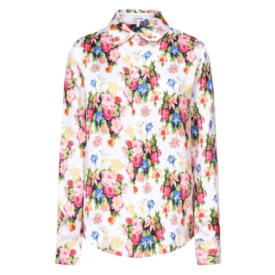 Loewe Ladies Tops. Fashion category: Casual Button-Downs. SKU: S540Y05XAV.9616. Loewe Floral-Printed Button-Up Shirt. Crafted from medium-weight double silk satin, this shirt features a regular fit and length for effortless elegance. Detailed with an allover floral bouquet print, it is finished with a classic collar, buttoned cuffs, and a button-front fastening for a polished look. Material: Silk. GENERAL Brand Type: Designer Collection Name: __NULL__VALUE__ INFORMATION Brand: Loewe Series: __Null__Value__ Gender: Womens Model: S540Y05XAV.9616 DETAILS Category: Tops Apparel Type: Casual Button-Downs ADDITIONAL INFO Jomashop Sku: -S540Y05XAV9616 Department: Clothing
