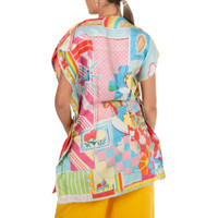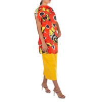 Loewe Ladies Tops. Fashion category: Shirts & Blouses. SKU: S359337XDX.9990. Color: Multicolor. Loewe Ladies Doll House Print Scarf Top. This Loewe top is a vibrant, oversized piece that showcases a bold, artistic print. The fabric is adorned with a striking combination of large yellow butterflies and abstract black-and-white flowers set against a bright red background. The relaxed silhouette features a wide, slightly structured boat neckline and loose cap sleeves, providing a casual yet elegant drape over the body. The top falls just below the hips, offering a comfortable and flow GENERAL Color: Multicolor INFORMATION Brand: Loewe Gender: Womens Model: S359337XDX.9990 DETAILS Category: Tops Apparel Type: Shirts & Blouses ADDITIONAL INFO Jomashop Sku: -S359337XDX9990 Department: Apparel