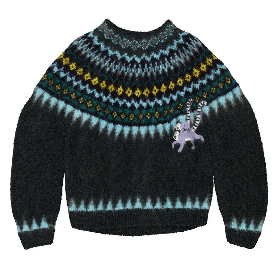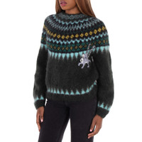 Loewe Ladies Tops. Fashion category: Cardigans & Sweaters. SKU: S359Y14KDX.4110. Color: Green. Loewe Lemur Patch Round Neck Sweater. This sweater features hand-knitted jacquard motifs, handmade and handstitched Lemur crochet patches at the front and on the left sleeve, a round neck, and ribbed collar, cuffs, and hem. 64% mohair, 32% nylon, 4% wool. GENERAL Brand Type: Designer Color: Green INFORMATION Brand: Loewe Gender: Womens Model: S359Y14KDX.4110 DETAILS Category: Tops Apparel Type: Cardigans & Sweaters Material: Mohair, Nylon, Wool ADDITIONAL INFO Jomashop Sku: -S359Y14KDX4110 Department: Clothing