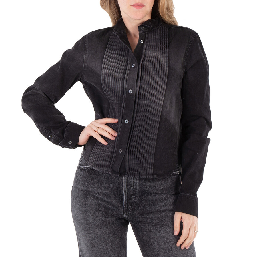 Loewe Ladies Tops. Fashion category: Shirts & Blouses. SKU: S540Y1DX02.8946. Color: Black. Loewe Pleated Wingtip Collar Denim Shirt. This shirt is made of cotton washed denim, featuring pleat detailing, a wingtip collar, a front button fastening, long sleeves with buttoned cuffs, and a curved hem. 100% Cotton. Made in Italy. GENERAL Brand Type: Designer Color: Black INFORMATION Brand: Loewe Gender: Womens Model: S540Y1DX02.8946 DETAILS Category: Tops Apparel Type: Shirts & Blouses Material: Cotton ADDITIONAL INFO Jomashop Sku: -S540Y1DX028946 Department: Clothing