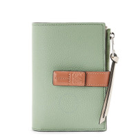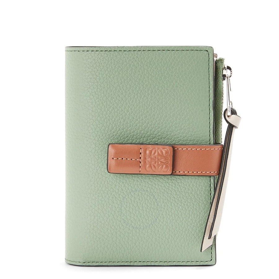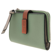 Loewe Ladies Wallets. SKU: C660P30X02.6465. Barcode: 8445555152736. Color: Rosemary/Tan. Size: Height 12.1cm x Width 9.3cm x Depth 2.5cm. Loewe Slim Compact Wallet - Rosemary/Tan. Crafted from soft grained calfskin, this wallet features contrasting colors. It includes six card slots, two small pockets, one large note pocket, and an additional coin compartment with a zip fastening. Finished with a calfskin zip pull, snap button closure, calfskin lining, and embossed Anagram. Main material: Soft Grained Calf Leather. Made in Spain. GENERAL Size Info: Height 12.1cm x Width 9.3cm x Depth 2.5cm Brand Type: Designer Color: Rosemary/Tan INFORMATION Brand: Loewe Gender: Womens Model: C660P30X02.6465 DETAILS Material: Calfskin Closure: Flap ADDITIONAL INFO UPC Code: 8445555152736 Jomashop Sku: Z-NUKMG Department: Bags Category: Wallets