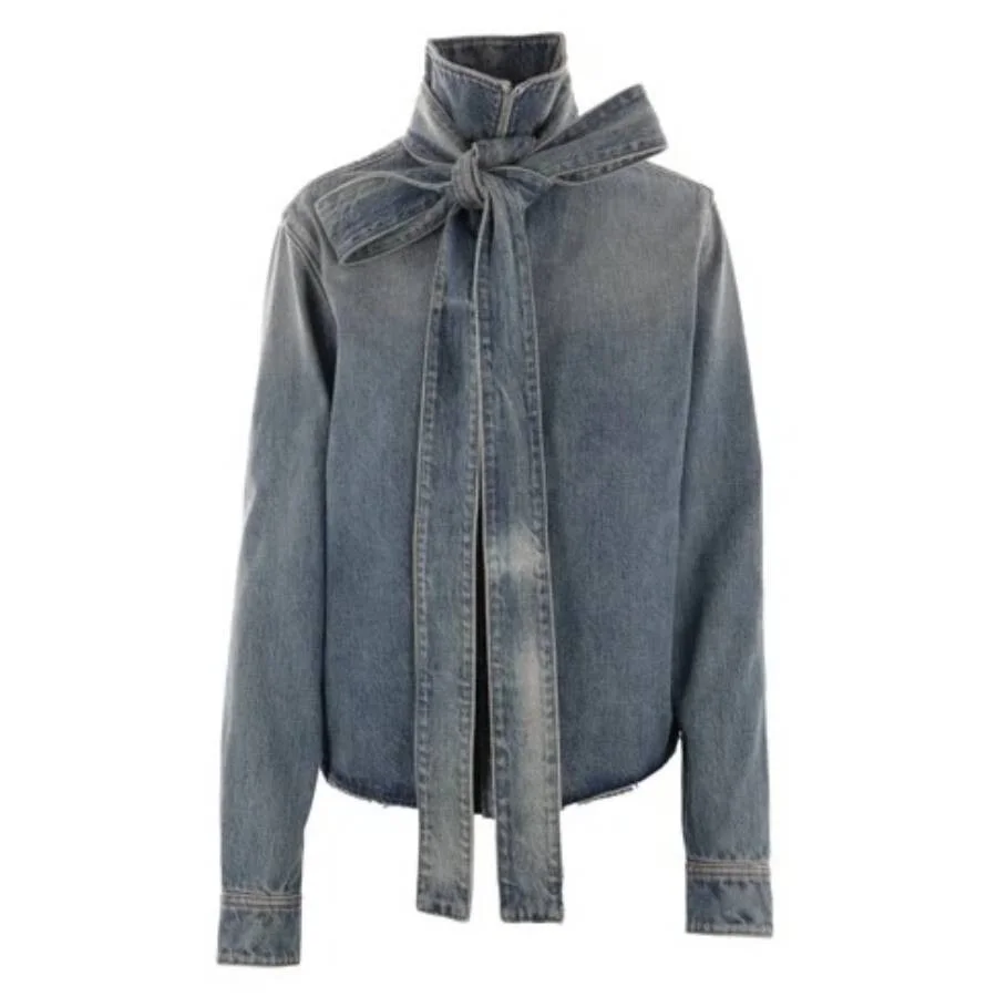 Loewe Ladies Tops. Fashion category: Casual Button-Downs. SKU: S359Y1DX08.6395. Loewe Washed Cotton Denim Bow Shirt. Crafted from medium-weight washed cotton denim, this shirt offers a regular fit and length for versatile styling. It features a classic collar, button cuffs, and button-front fastening, with a removable lavalliere bow adding a playful, elegant touch. Finished with a curved hem for a polished silhouette. Material: Cotton. GENERAL Size Info: 6 Brand Type: Designer Clothing Size: Ladies Apparel Size: 6 Color: Washed Denim INFORMATION Brand: Loewe Gender: Womens Model: S359Y1DX08.6395 DETAILS Category: Tops Apparel Type: Casual Button-Downs Material: Cotton ADDITIONAL INFO UPC Code: 8445555463627 Jomashop Sku: Z-S7E86 Department: Clothing