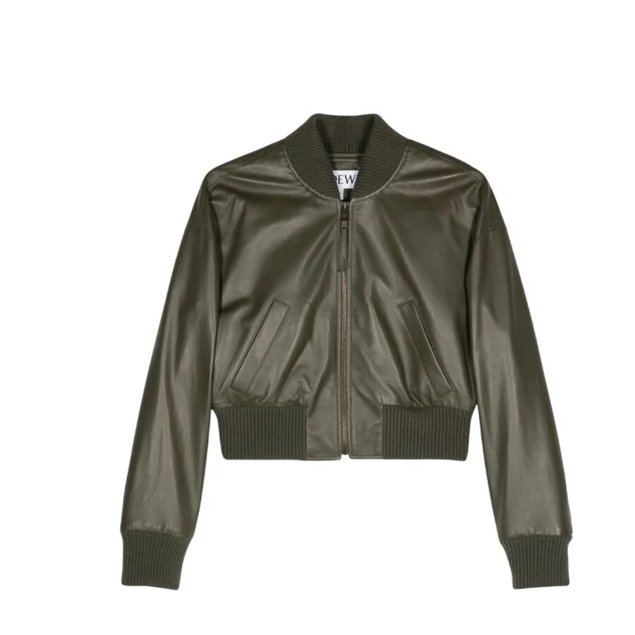 Loewe Ladies Outerwear. Fashion category: Coats & Jackets. SKU: S359Y34L26.4160. Loewe Womens Cropped Leather Bomber Jacket. Crafted from premium lambskin, this dark green bomber jacket combines luxury and modern style in a waist-length silhouette. Ribbed knit trims at the collar, cuffs, and hem ensure a tailored, comfortable fit, while a durable front zipper and discreet side pockets maintain a sleek, functional design. The upper back is adorned with the designer’s signature logo patch, and meticulous stitching highlights the jacket’s superior craftsmanship, making it a contemporary, stylish wardrobe staple. GENERAL Size Info: 4 Brand Type: Designer Clothing Size: Ladies Apparel Size: 4 INFORMATION Brand: Loewe Gender: Womens Model: S359Y34L26.4160 DETAILS Category: Outerwear Apparel Type: Coats & Jackets Material: Leather ADDITIONAL INFO UPC Code: 8445555483434 Jomashop Sku: Z-MG9DP Department: Clothing