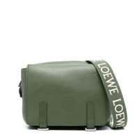 Loewe Men's Messenger. SKU: B553A72X27.4700. Barcode: 8445555266686. Color: Hunter Green. Size: Height 18cm x Width 23cm x Depth 9cm. Loewe XS Military Messenger Bag - Hunter Green. The XS Military messenger bag is crafted from soft, smooth calfskin and features an adjustable crossbody strap with a metal slider. It has a magnetic closure, an internal slip pocket, and a herringbone cotton canvas lining. The bag is finished with an embossed Anagram for a signature touch. Main material: Supple Smooth Calf/Jacquard. Made in Portugal. GENERAL Size Info: Height 18cm x Width 23cm x Depth 9cm Brand Type: Designer Color: Hunter Green INFORMATION Brand: Loewe Gender: Mens Model: B553A72X27.4700 DETAILS Material: Calfskin Closure: Flap ADDITIONAL INFO UPC Code: 8445555266686 Jomashop Sku: Z-NYPK8 Department: Bags Category: Messenger