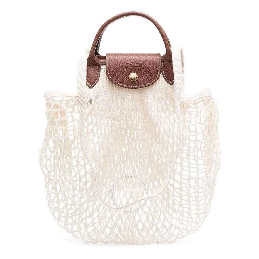 Longchamp Ladies Shoulder Bag. SKU: 10121HVH037. Barcode: 3597922046621. Color: Ecru. Size: L: 15" x H: 12.2". Longchamp Le Pliage L Filet Mesh Shoulder Bag In Ecru. The Le Pliage bag features cotton material, gold metallic hardware, Russian leather (cowhide) trimming, a snap closure for the main compartment, a strap height of 12.2 inches, and a handle height of 2.4 inches. GENERAL Size Info: L: 15" x H: 12.2" Color: Ecru Collection Name: Le Pliage INFORMATION Brand: Longchamp Series: Le Pliage Gender: Womens Model: 10121HVH037 DETAILS Material: Cotton Closure: Snap DIMENSIONS Size: Large ADDITIONAL INFO UPC Code: 3597922046621 Jomashop Sku: Z-SB6KP Department: Bags Category: Shoulder Bag