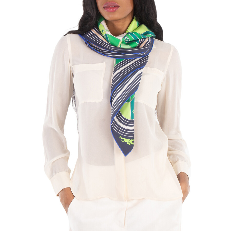 Longchamp Ladies Scarves. Fashion category: Scarves. SKU: 50642SOI129. Barcode: 3597922682140. Color: Green. Size: 90 x 90 cm. Longchamp League Sqaure Silk Scarf. 100% Silk. GENERAL Size Info: 90 x 90 cm Color: Green INFORMATION Brand: Longchamp Gender: Womens Model: 50642SOI129 DETAILS Category: Scarves Apparel Type: Scarves Material: Silk ADDITIONAL INFO UPC Code: 3597922682140 Jomashop Sku: Z-2YMMB Department: Fashion Accessories