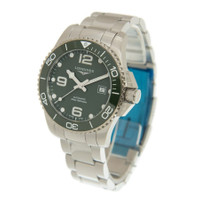 Silver-tone stainless steel case and bracelet. Uni-directional rotating silver-tone stainless steel with an inlaid green ceramic ring bezel. Green dial with luminous black hands and dot hour markers. Arabic numerals appear at the 6, 9 and 12 o'clock positions. Minute markers around the outer rim. Dial Type: Analog. Luminescent hands and markers. Date display at the 3 o'clock position. Longines Calibre L888 Automatic movement, based upon ETA A31.L11, containing 21 Jewels, bitting at 25200 vph, and has a power reserve of approximately 64 hours. Scratch resistant sapphire crystal. Screw down crown. Solid case back. Round case shape, case size: 43 mm, case thickness: 11.90 mm. Band width: 21 mm. Fold over clasp with a safety release. Water resistant at 300 meters / 1000 feet. Functions: date, hour, minute, second. Additional Info: original box, manual (complete accessories). Conquest Series. Dive watch style. Watch label: Swiss Made. Longines Conquest Automatic Green Dial Men's Watch L37824066. INFORMATION Brand: Longines Series: Conquest Collection Name: Conquest Gender: Mens Model: L37824066 Watch Label: Swiss Made Movement: Automatic Engine: Longines Calibre L888 Power Reserve: 64 hours CASE Case Size: 43 mm Case Thickness: 11.90 mm Case Material: Stainless Steel Case Shape: Round Case Back: Solid BAND Band Material: Stainless Steel Band Type: Bracelet Band Color: Silver-tone Band Width: 21 mm Clasp: Fold Over with Safety Release DIAL Dial Color: Green Type: Analog Crystal: Scratch Resistant Sapphire Hands: Luminous Black Dial Markers: Dot Second Markers: Arabic Numerals appear at the 6, 9 and 12 o'clock positions. Minute Markers around the outer rim Luminiscence: Hands and Markers Bezel: Uni-directional Rotating Bezel Color: Silver-tone Bezel Material: Stainless Steel with an inlaid Green Ceramic Ring Crown: Screw Down FEATURES Water Resistance: 300 meters / 1000 feet Calendar: Date display at the 3 o'clock position Functions: Date, Hour, Minute, Second Watch Features: Stainless Steel, Ceramic, Analog ADDITIONAL INFO Watch Style: Dive Warranty: 2 Year Jomashop Warranty UPC Code: 703200211138 Additional Info: Original Box, Manual (Complete Accessories) Jomashop Sku: LNG37824066 Department: Watches Category: Watches