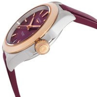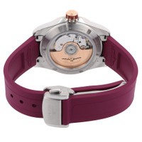 Silver-tone stainless steel & plated rose gold case with a purple rubber strap. Fixed rose gold-tone stainless steel bezel. Purple dial with rose gold-tone hands and index hour markers. Minute markers around the outer rim. Dial Type: Analog. Date display at the 6 o'clock position. Longines Calibre L888 Automatic movement, based upon ETA A31.L11, containing 21 Jewels, bitting at 25200 vph, and has a power reserve of approximately 64 hours. Scratch resistant sapphire crystal. Screw down crown. Transparent see through case back. Round case shape, case size: 34 mm, case thickness: 10.9 mm. Band width: 17 mm. Buckle clasp. Water resistant at 100 meters / 330 feet. Functions: date, hour, minute, second. Conquest Series. Dress watch style. Watch label: Swiss Made. Longines Conquest Automatic Purple Dial Ladies Watch L3.430.5.98.9. GENERAL Box Type: Original Box CASE Case Thickness: 10.9 mm Case Material: Stainless Steel & Plated Rose Gold Case Shape: Round Case Back: Transparent See Through BAND Band Material: Rubber Band Type: Strap Band Color: Purple Band Width: 17 mm Clasp: Buckle DIAL Dial Color: Purple Type: Analog Crystal: Scratch Resistant Sapphire Hands: Rose Gold-tone Dial Markers: Index Second Markers: Minute Markers around the outer rim Bezel: Fixed Bezel Color: Rose Gold-tone Bezel Material: Stainless Steel Crown: Screw Down INFORMATION Brand: Longines Series: Conquest Collection Name: Conquest Gender: Womens Model: L3.430.5.98.9 Watch Label: Swiss Made Movement: Automatic Engine: Longines Calibre L888 Power Reserve: 72 hours FEATURES Water Resistance: 100 meters / 330 feet Calendar: Date display at the 6 o'clock position Functions: Date, Hour, Minute, Second Watch Features: Analog, Gold, Rubber, Stainless Steel ADDITIONAL INFO Watch Style: Dress Warranty: 2 Year Jomashop Warranty Jomashop Sku: LNG34305989 Department: Watches