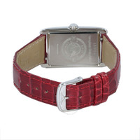 Stainless steel case with a red (alligator) leather strap. Fixed stainless steel bezel. Silver "flinque" dial with blue hands and Roman numeral hour markers. Minute markers around an inner ring. Dial Type: Analog. Small seconds sub-dial. Longines calibre L176 quartz movement. Scratch resistant sapphire crystal. Pull / push crown. Solid case back. Rectangle case shape. Case dimensions: 23.3 mm x 37 mm. Case thickness: 7.20 mm. Band width: 17 mm. Tang clasp. Water resistant at 30 meters / 100 feet. Functions: hour, minute, small second. Dolcevita Series. Dress watch style. Watch label: Swiss Made. Item Variations: L5.512.4.71.5. Longines DolceVita Quartz Silver Flinque Dial Ladies Watch L5.512.4.71.5. INFORMATION Brand: Longines Series: Dolcevita Collection Name: DolceVita Gender: Womens Model: L5.512.4.71.5 Watch Label: Swiss Made Movement: Quartz Engine: Longines Calibre L176 CASE Case Size: 23.3 mm x 37 mm Case Thickness: 7.20 mm Case Material: Stainless Steel Case Shape: Rectangle Case Back: Solid BAND Band Material: (Alligator) Leather Band Type: Strap Band Color: Red Band Width: 17 mm Clasp: Tang DIAL Dial Color: Silver "Flinqué" Type: Analog Crystal: Scratch Resistant Sapphire Hands: Blue Dial Markers: Roman Numeral Second Markers: Minute Markers around an inner ring Sub Dials: Small Seconds Bezel: Fixed Bezel Color: Silver-tone Bezel Material: Stainless Steel Crown: Pull / Push FEATURES Water Resistance: 30 meters / 100 feet Functions: Hour, Minute, Small Second Watch Features: Stainless Steel, Leather, Analog, Alligator Leather ADDITIONAL INFO Watch Style: Dress Warranty: 2 Year Jomashop Warranty UPC Code: 7612356190385 Jomashop Sku: LNG55124715 Item Variation: L5.512.4.71.5 Department: Watches Category: Watches