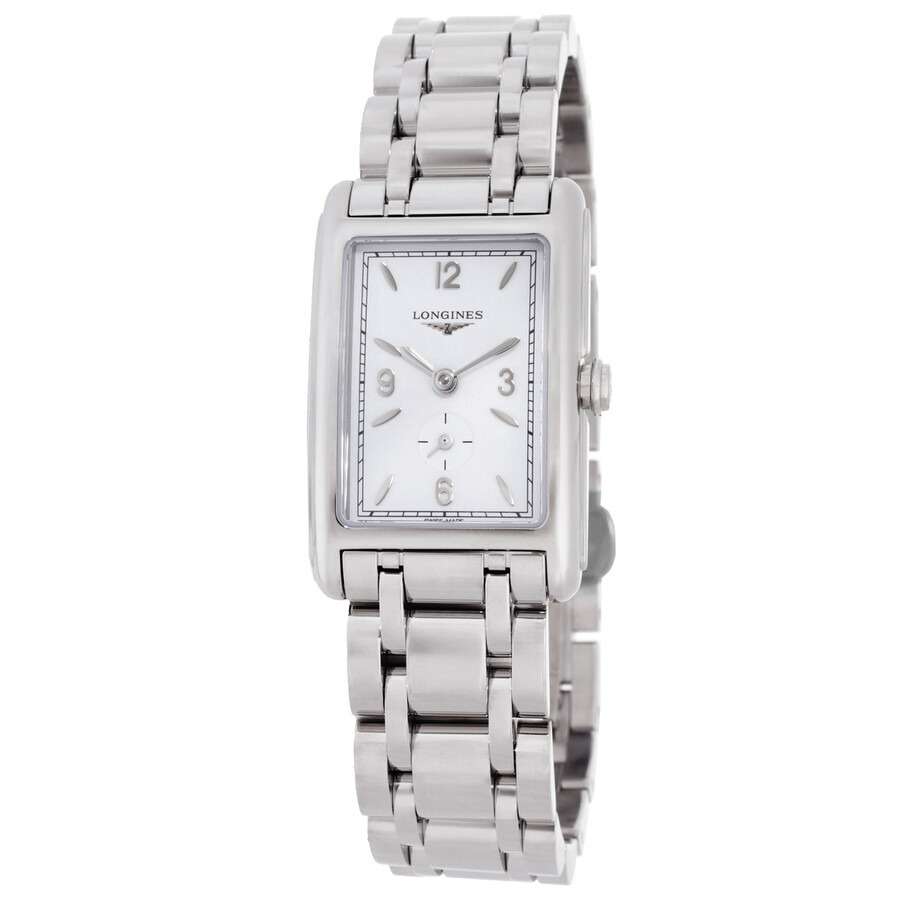 Stainless steel case with a polished stainless steel bracelet. Fixed bezel. White dial with silver-tone hands and index-Arabic numerals hour markers. Dial Type: Analog. One-small seconds subdials. Quartz movement. Scratch resistant sapphire crystal. Pull / push crown. Solid case back. Rectangle case shape, case size: 20.8 mm x 32 mm. Hidden folding clasp. Water resistant at 30 meters / 100 feet. Functions: hour, minute, second. Dolcevita Series. Dress watch style. Watch label: Swiss Made. Longines Dolcevita Quartz White Dial Ladies Watch L5.255.4.16.6. GENERAL Box Type: Original Box CASE Case Diameter: 32 mm Case Material: Stainless Steel Case Shape: Rectangle Case Back: Solid BAND Band Material: Stainless Steel Band Type: Bracelet Band Color: Polished Clasp: Hidden Folding DIAL Dial Color: White Type: Analog Crystal: Scratch Resistant Sapphire Hands: Silver-tone Dial Markers: Index-Arabic Numerals Sub Dials: One-Small Seconds Bezel: Fixed Crown: Pull / Push INFORMATION Brand: Longines Series: Dolcevita Collection Name: Dolcevita Gender: Womens Model: L5.255.4.16.6 Watch Label: Swiss Made Movement: Quartz FEATURES Water Resistance: 30 meters / 100 feet Functions: Hour, Minute, Second Watch Features: Analog, Stainless Steel ADDITIONAL INFO Watch Style: Dress Warranty: 2 Year Jomashop Warranty UPC Code: 7612356208714 Jomashop Sku: LNG52554166 Department: Watches Category: Watches